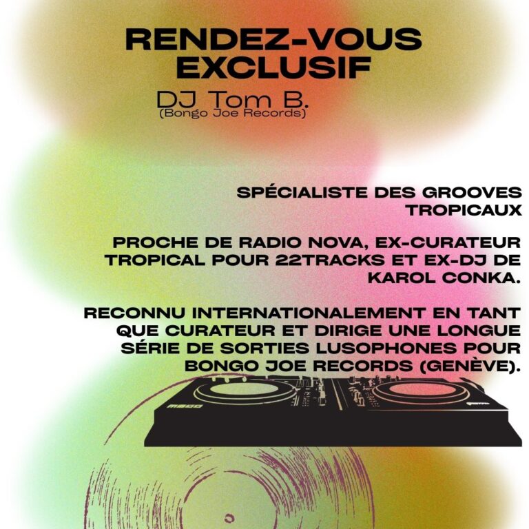 Spécialiste des grooves tropicaux, DJ Tom B. nous prépare une sélection exotique, enivrante et ensoleillée, issue de sa collection de plus de 10.000 vinyls.